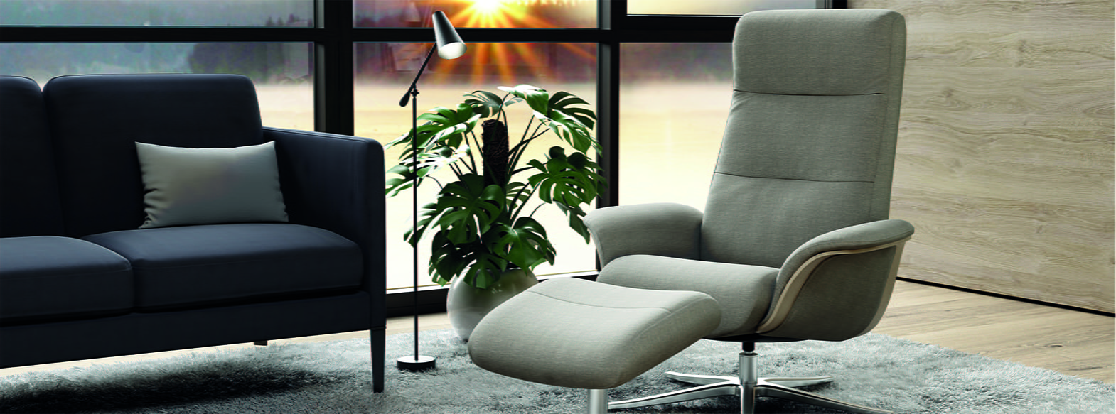 Moderne hvilestol med høydejusterbar krakk. Stolen har 360 grader sving med regulerbar rygg og nakkepute, samt fåes med 3 sittehøyder og kan dermed tilpasses personer i alle størrelser. Space tilbys med mange forskjellige bekledninger og understell og kan oppgraderes til motorisert eller manuell fothviler. Formstøpt kaldskum i sete og rygg gir lang levetid.